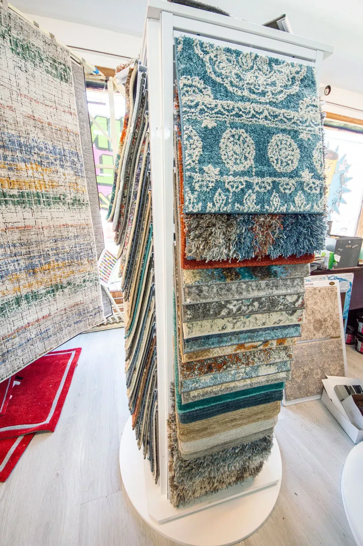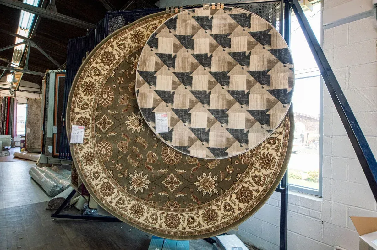 We can custom cut an area rug to fit any size or shape room. Since we do the work here in the warehouse, our customers don’t pay “custom” prices. They pick out the style and binding, providing us the measurements and we go from there. We also import a huge variety of rugs in the most popular sizes from all over the world, including Egypt, Italy and Turkey. The right area rug has the unique ability to pull together colors or elements in a room.